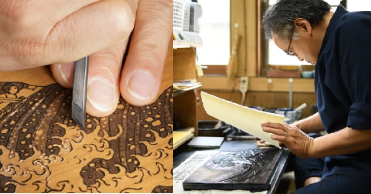歷史悠久的木板印刷,在日本擁有深厚的文化底蘊。1300年前飛鳥時代(592-710年)同佛教與製紙技術從中國遠渡傳入日本,最初扎根寺院,用於僧人修行時所需的佛書教典,到江戶時代(1603-1867年)通俗流行文化大放異采。日本版畫的製程分為繪畫、雕刻、刷版,極致工藝創造的職人身份更是傳遞浮世繪的重要推手,包括繪製原畫的「繪師」、版木上雕刻墨線與色板的「彫師(雕版師)」、上色再轉印至紙張的「摺師(刷版師)」,每一幅浮世繪版畫的體現非一人之功,是眾人通力之作。