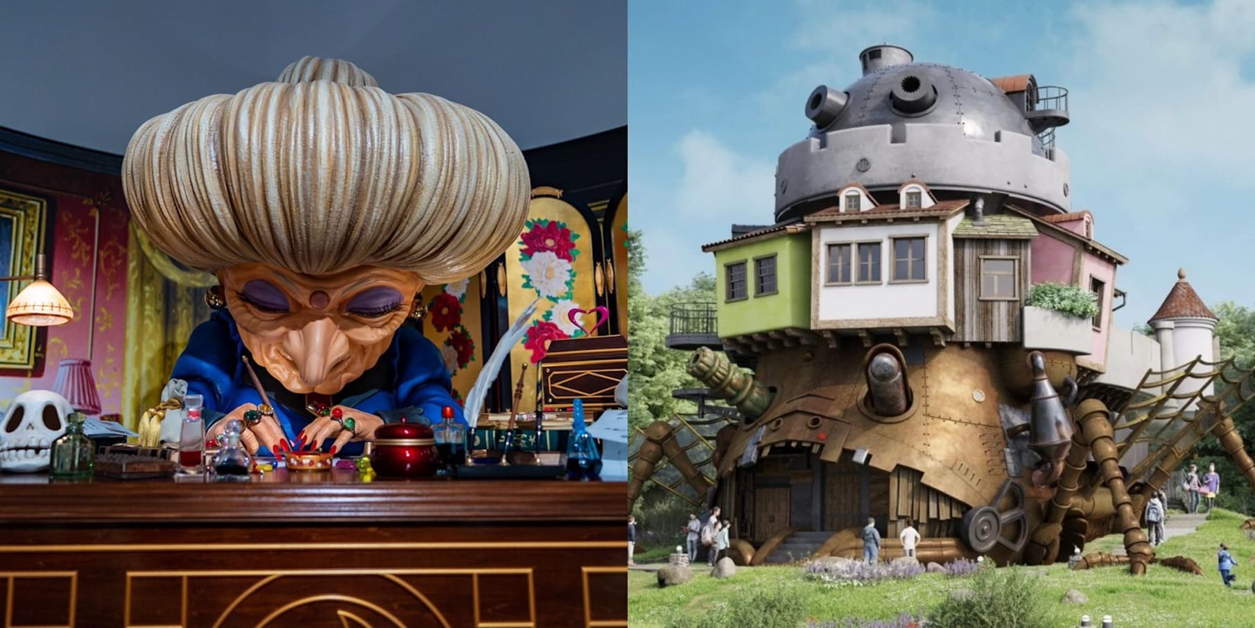 而隨著開幕日的接近,吉卜力官方Twitter近期也陸續公開了一系列的實景照,一踏進公園來到「青春之丘」,會先看到以《霍爾的移動城堡》為背景興建19世紀蒸汽朋克風格塔樓,旁邊還有《心之谷》中出現的精品古物商店「地球屋」,以及《貓的報恩》登場的「貓咪事務所」;到了園區中央的「吉卜力的大倉庫」,則是將之前公園的溫水泳池場所改建成《神隱少女》裡的異世界小鎮街道,用來展示吉卜力美術作品、展覽、影片播放、遊樂場所、以及販售紀念商品的地點;「咚咚森林」則是以《龍貓》中皋月和梅的家為中心,將該場所周邊的樹林重整成散步道路。其他像是《神隱少女》中湯婆婆的辦公桌、《天空之城》的拉普達庭園,以及之後將開放的《魔女宅急便》中琪琪的家也都將神還原!