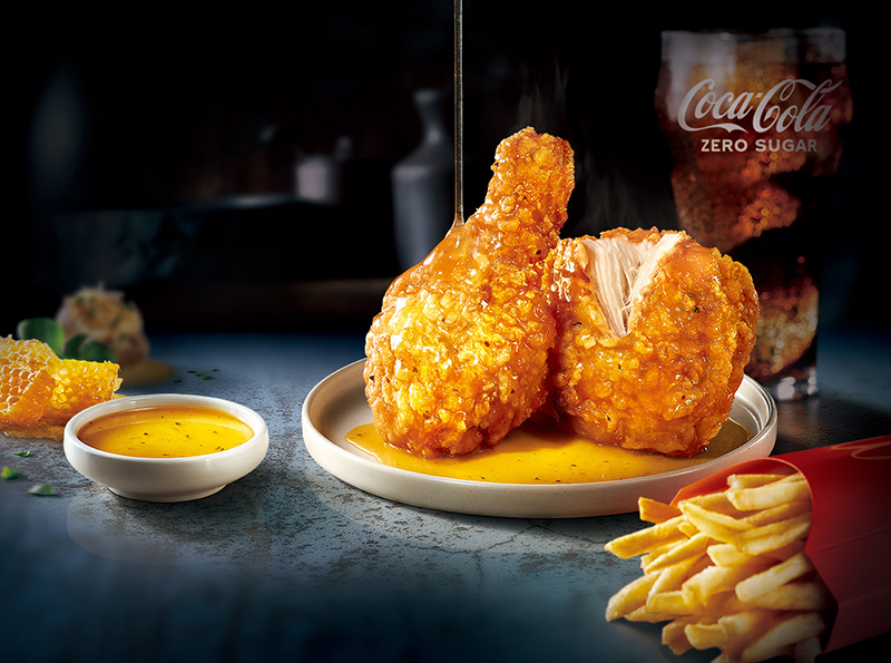 「蜂蜜洋釀韓風炸鷄腿」先烤後炸、高溫鎖汁,裹上韓國直送「不倒翁OTTOGI蜂蜜蒜香醬」,完美還原韓國道地滋味。由蜂蜜、奶油、香蒜、羅勒及奧勒岡葉等香料調製而成,入口先感受到蜂蜜的濃郁風味,尾韻則有著淡雅的奶油及香蒜香氣,與香嫩多汁的麥脆鷄腿完美融合,熱愛韓式美食的你必須來一份。