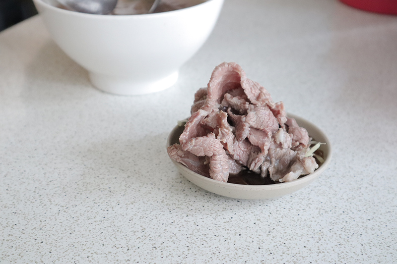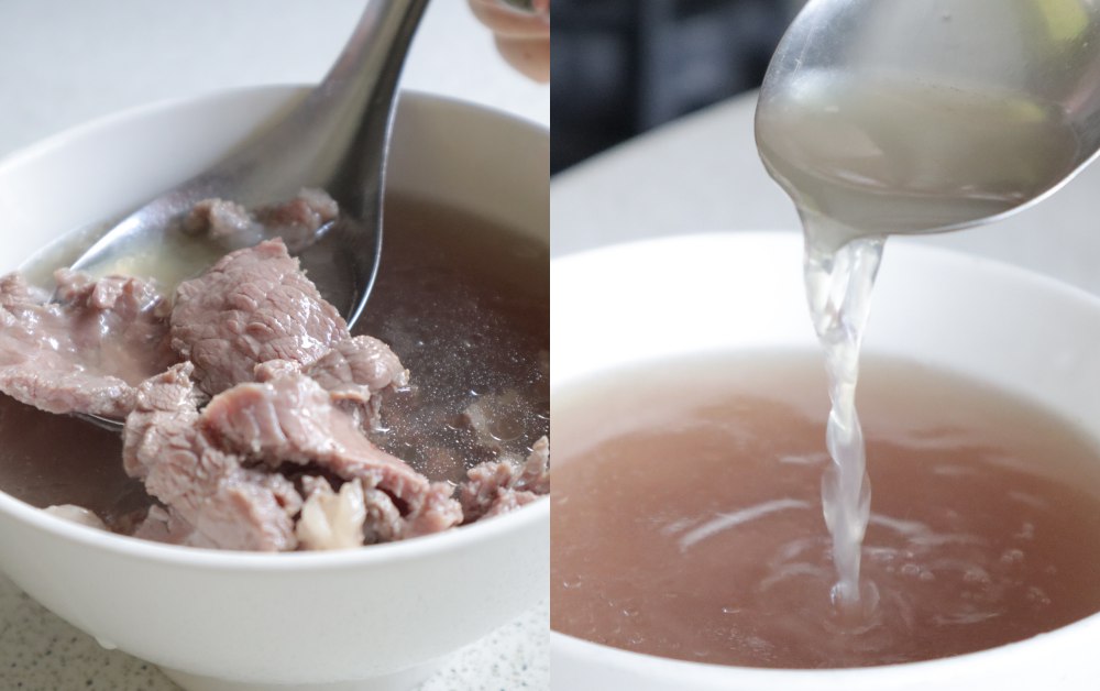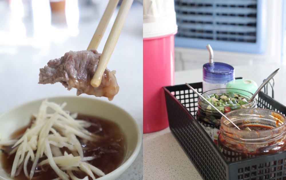 不只店家要推“在地”,就連吃法也要“在地”推薦!除了可以牛肉直接沾醬吃之外,阿牛會給你一碟薑絲,推薦可以淋上醬油膏,在迅速將牛肉湯裡的牛肉盛起來放上,為了就是讓剛滾熟的生牛肉不要泡在湯裡使肉質變老,更能吃到牛肉的鮮嫩口感!