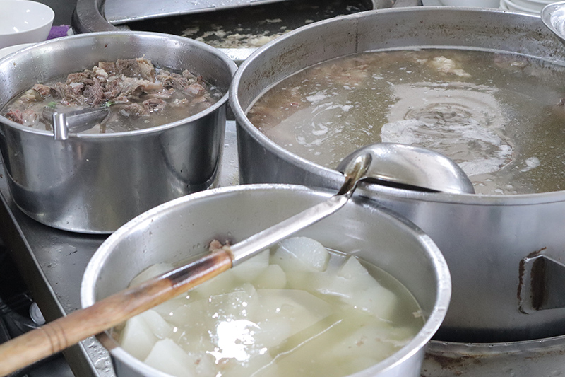 台南牛肉湯的迷人之處,莫過於天氣再熱都讓想來一碗的衝動,每家都有各自主推特色,而阿牛最強的賣點就是以菜頭為基底的高湯。有別於其他牛肉湯店,以多種蔬菜熬煮或是以藥膳入湯,容易吃不出牛肉的鮮甜滋味。阿牛的湯底喝起來滿滿濃郁的菜頭清甜味,在上桌前,老闆會將滾燙的高湯衝滾牛肉,牛肉香氣與菜頭鮮甜結合,反倒更能喝出牛肉的鮮甜滋味。