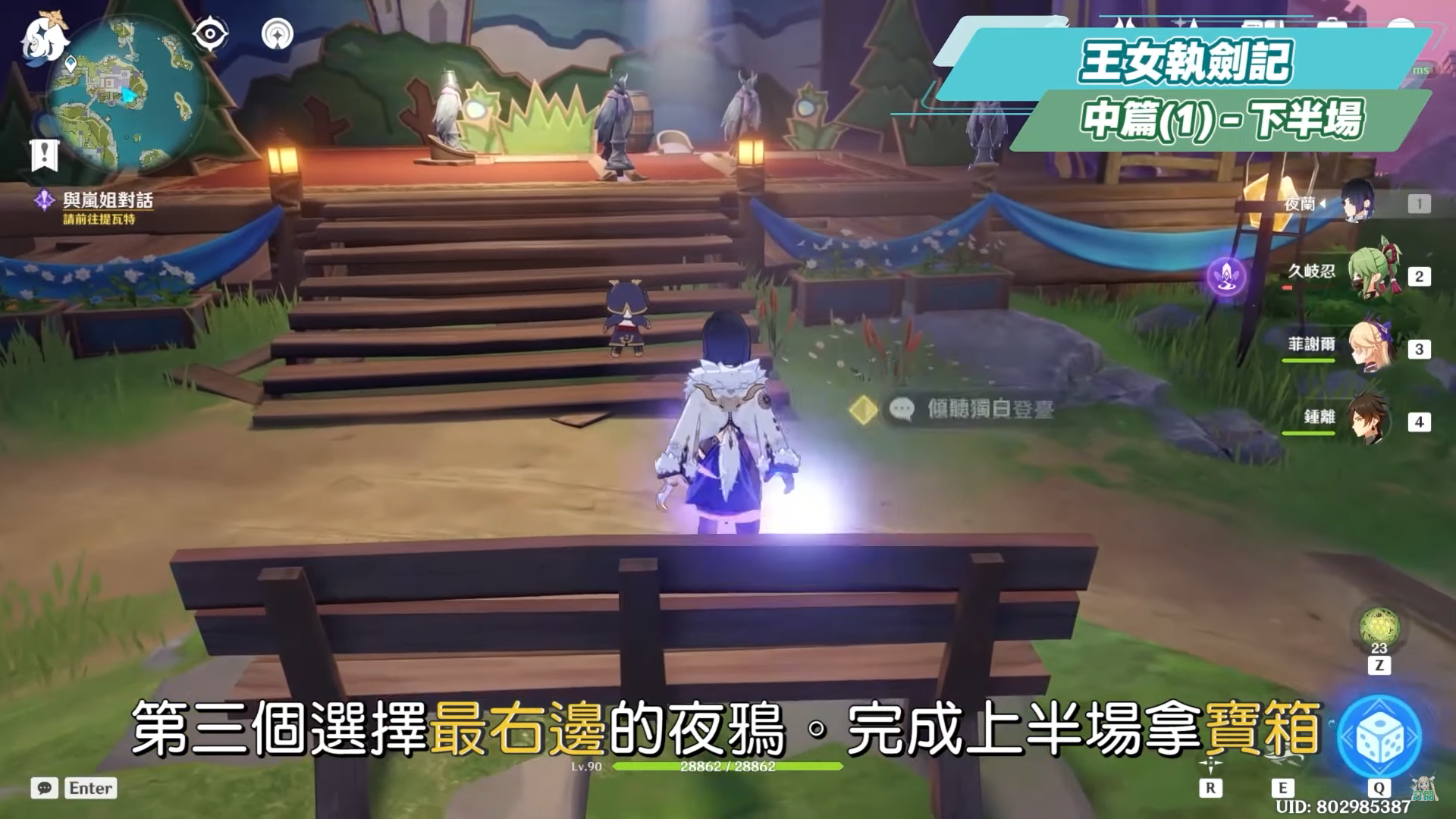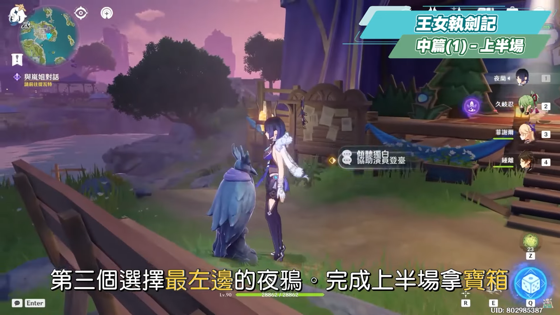 第三個選擇中間的夜鴉。完成上半場拿寶箱。