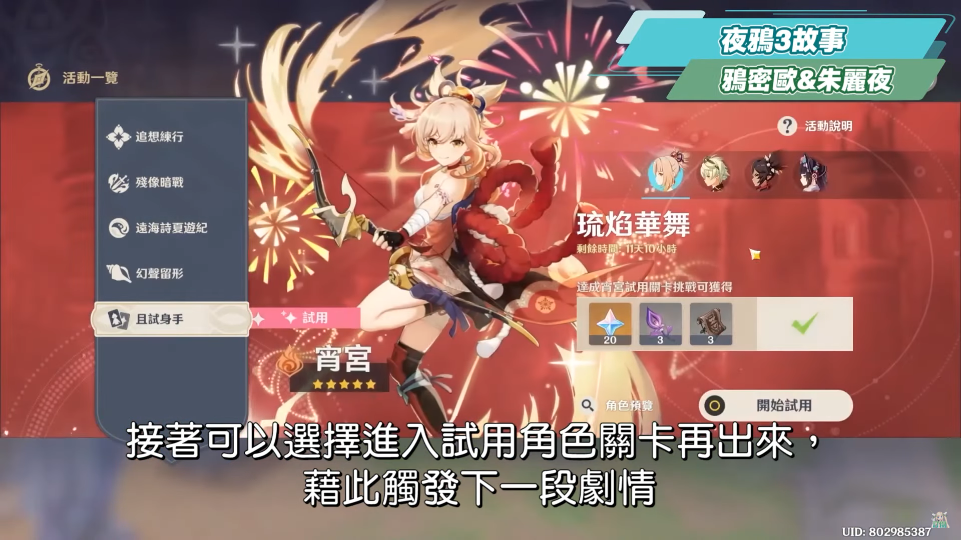 接著推一下鴉密歐,接著可以選擇進入試用角色關卡再出來,藉此觸發下一段劇情