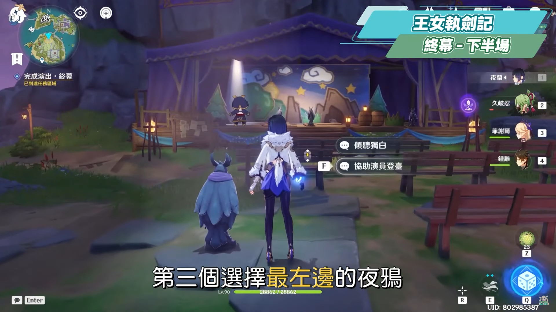 第三個選擇最左邊的夜鴉。完成上半場拿寶箱。