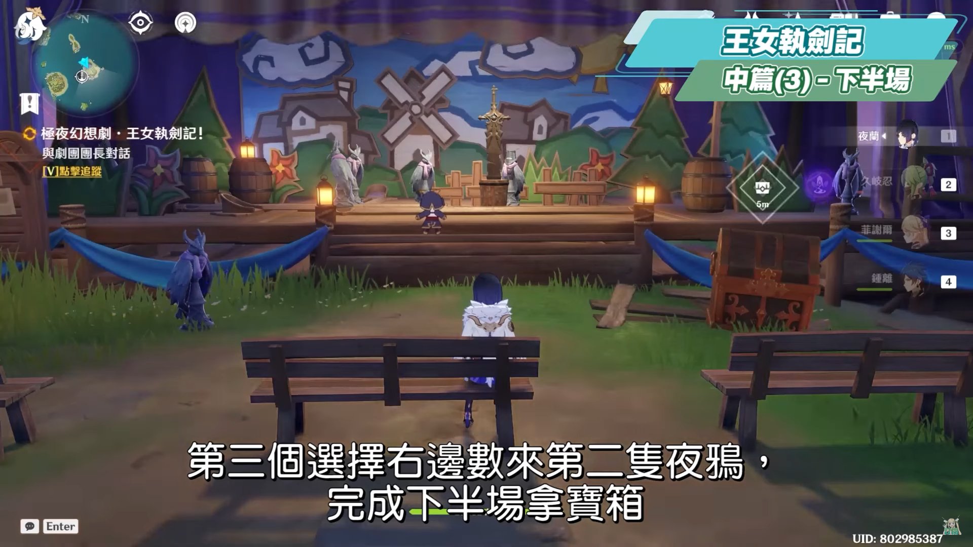 第三個選擇最右邊的夜鴉。完成上半場拿寶箱
