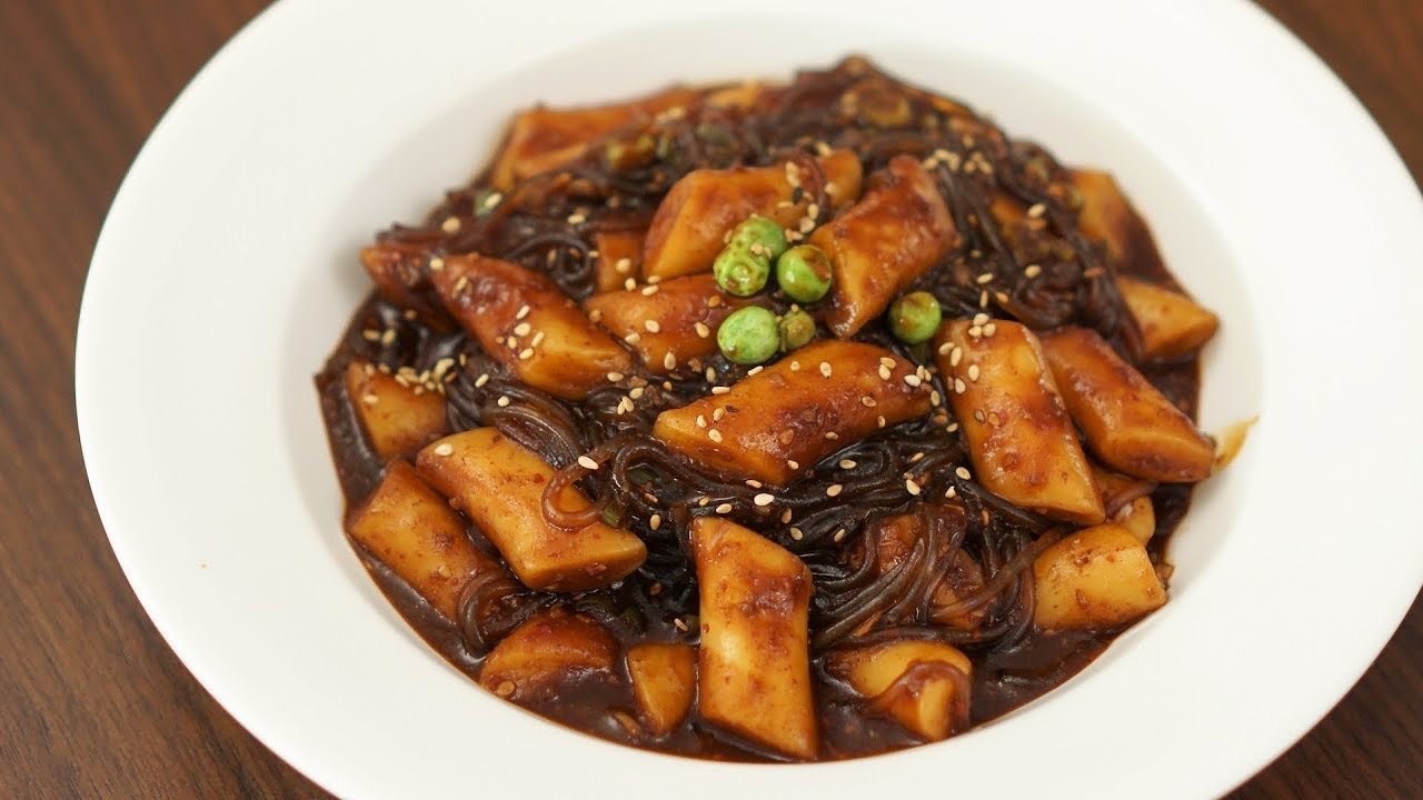 「炸醬炒年糕」是以炸醬來替代辣炒年糕特有的辣醬製作而成,基本配料為紅蘿蔔、高麗菜、洋蔥和豬、牛肉,也可以依個人的口味喜好添加辣椒醬。