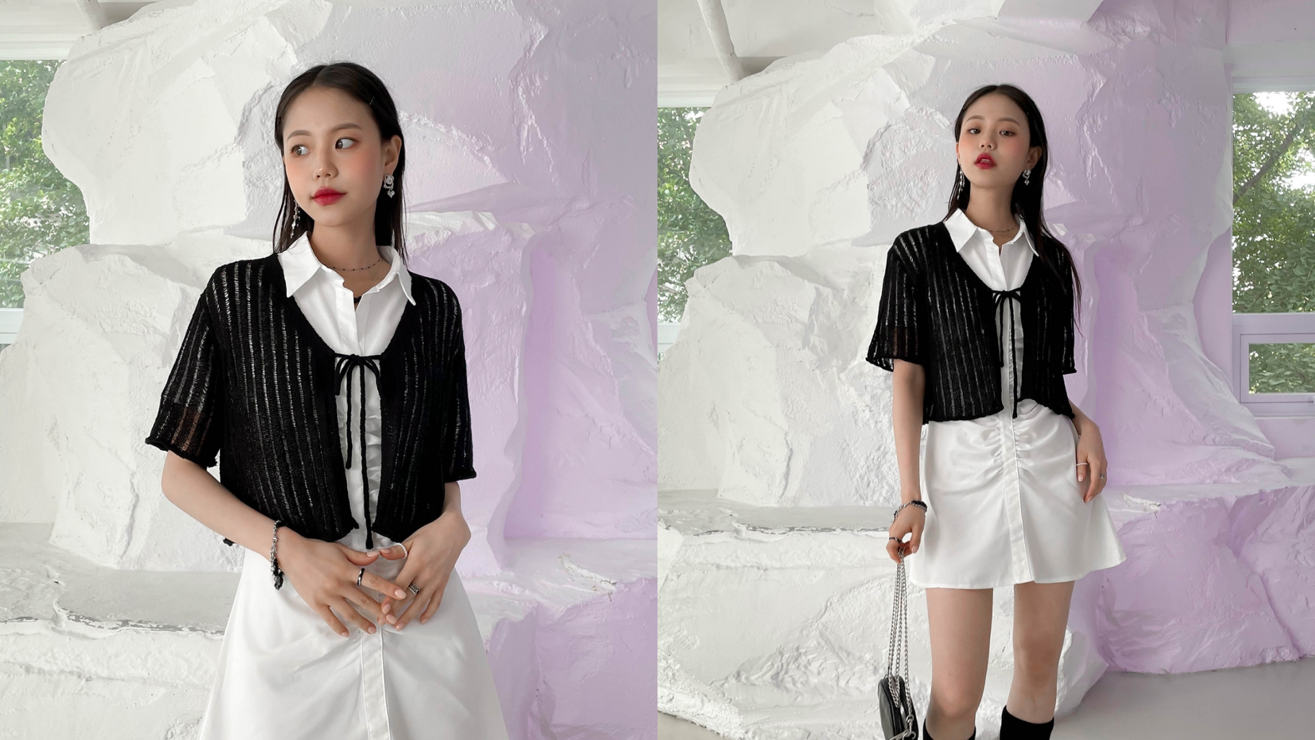 夏日罩衫推薦 7:QUEEN SHOP 綁帶設計前後兩穿外罩洋裝