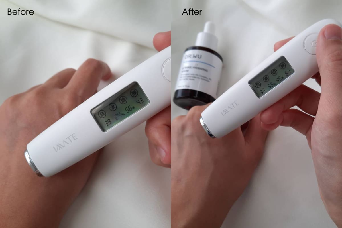 實際使用水分由原本的24%激升至53%,7天後不僅完美改善原本上妝後容易乾燥、脫皮、泛紅的鼻翼和兩頰,睡前多這一瓶,隔天起床會發現肌膚變得非常透亮水潤,像是敷了保溼面膜一樣發光到不行,肌膚變得澎潤又散發健康光澤,一瓶抵三瓶,省時又有感,已經榮登儂編每日保養的必擦單品!