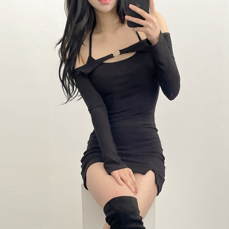 貼身洋裝1.克妹Ke-Mei 辣妹心機斜肩中長洋裝