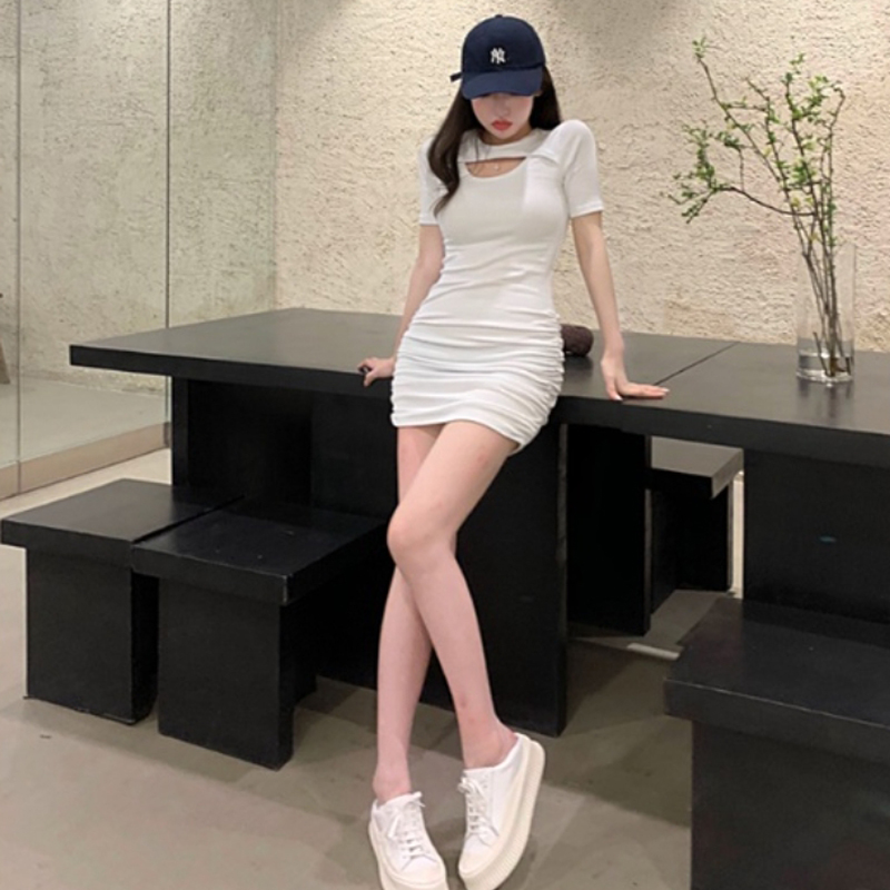 這件包臀裙短袖洋裝獨特的剪裁,就像是假兩件般,胸口若隱若現的最撩人!白色洋裝很好搭也非常好駕馭,簡約的貼身洋裝,戴上鴨舌帽穿上休閒鞋,輕鬆呈現休閒風。若是配上高跟鞋與質感腰包,搖身一變名媛風,搭配不同的配件,展現不同的個人風格。