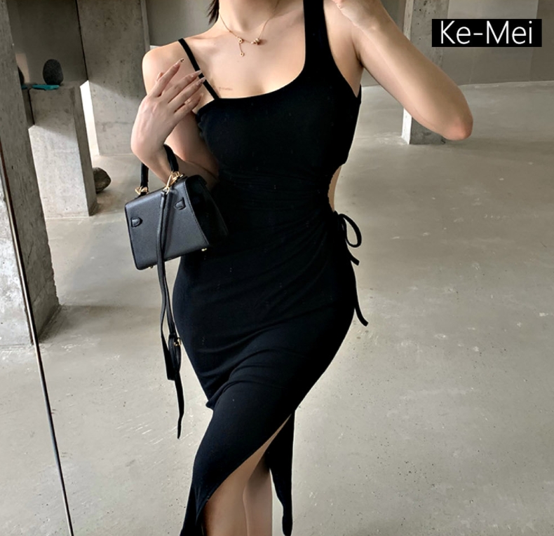 這件側綁帶洋裝太適合跟另一半約會時穿出門啦!腰間小心機設計,露出小蠻腰,黑色視覺上非常的顯瘦,辣妹中長版洋裝斜肩、側綁帶處處有小細節,中長裙開岔特別的顯腿長。飾品方面可以搭配細緻的頸鍊,質感又優雅的穿搭,更能釋放出個人獨特的魅力呢!