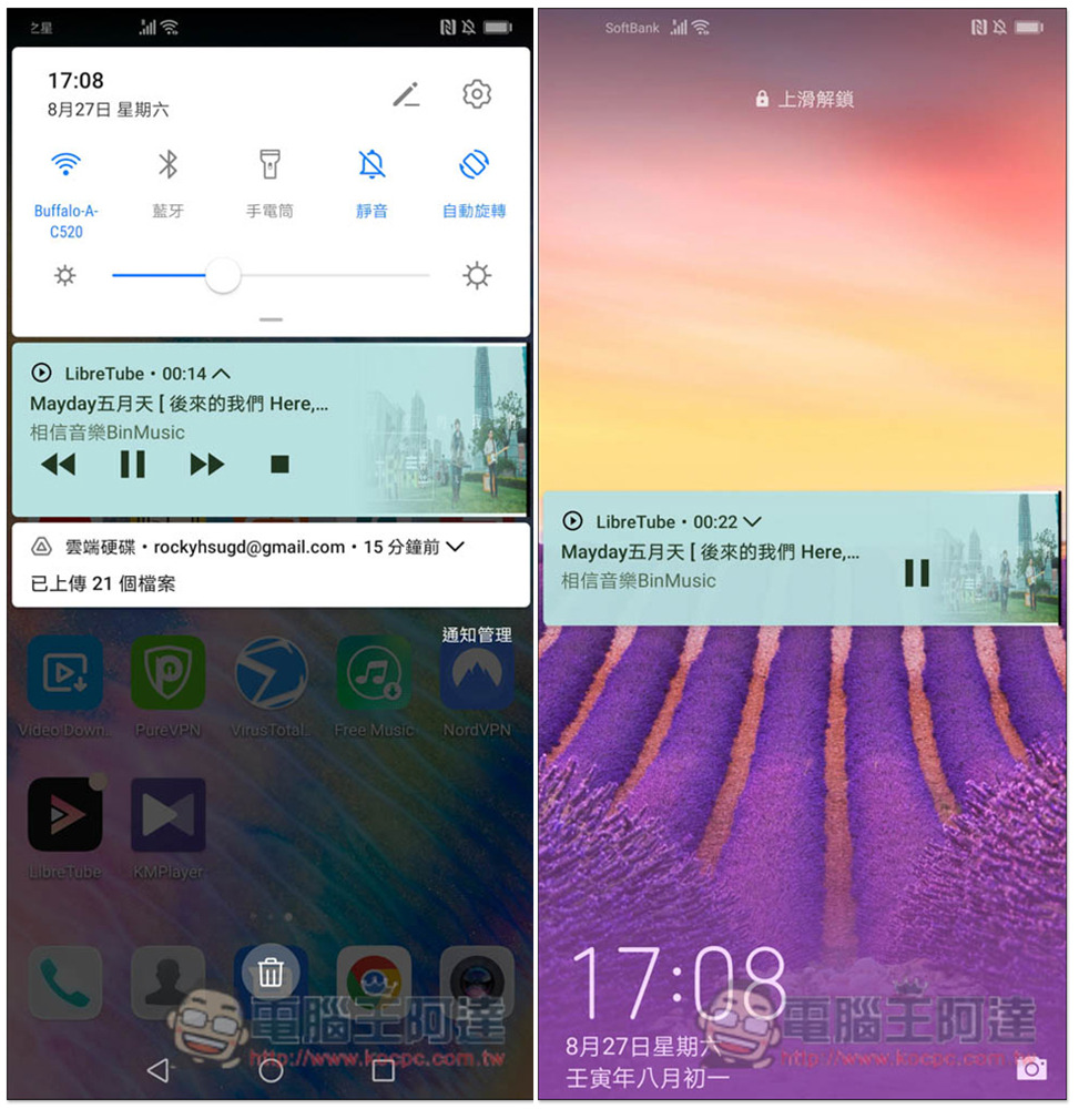 跳回桌面就會看到音樂會繼續在背景播放,待機也沒問題:
