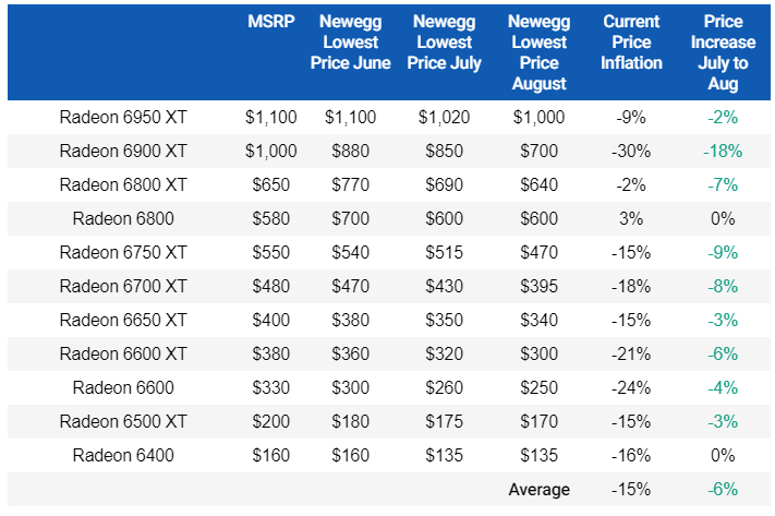 AMD Radeon 6000 系列中,6900XT 跌最多,目前下跌了 30%,Newegg 最低只需 700 美金: