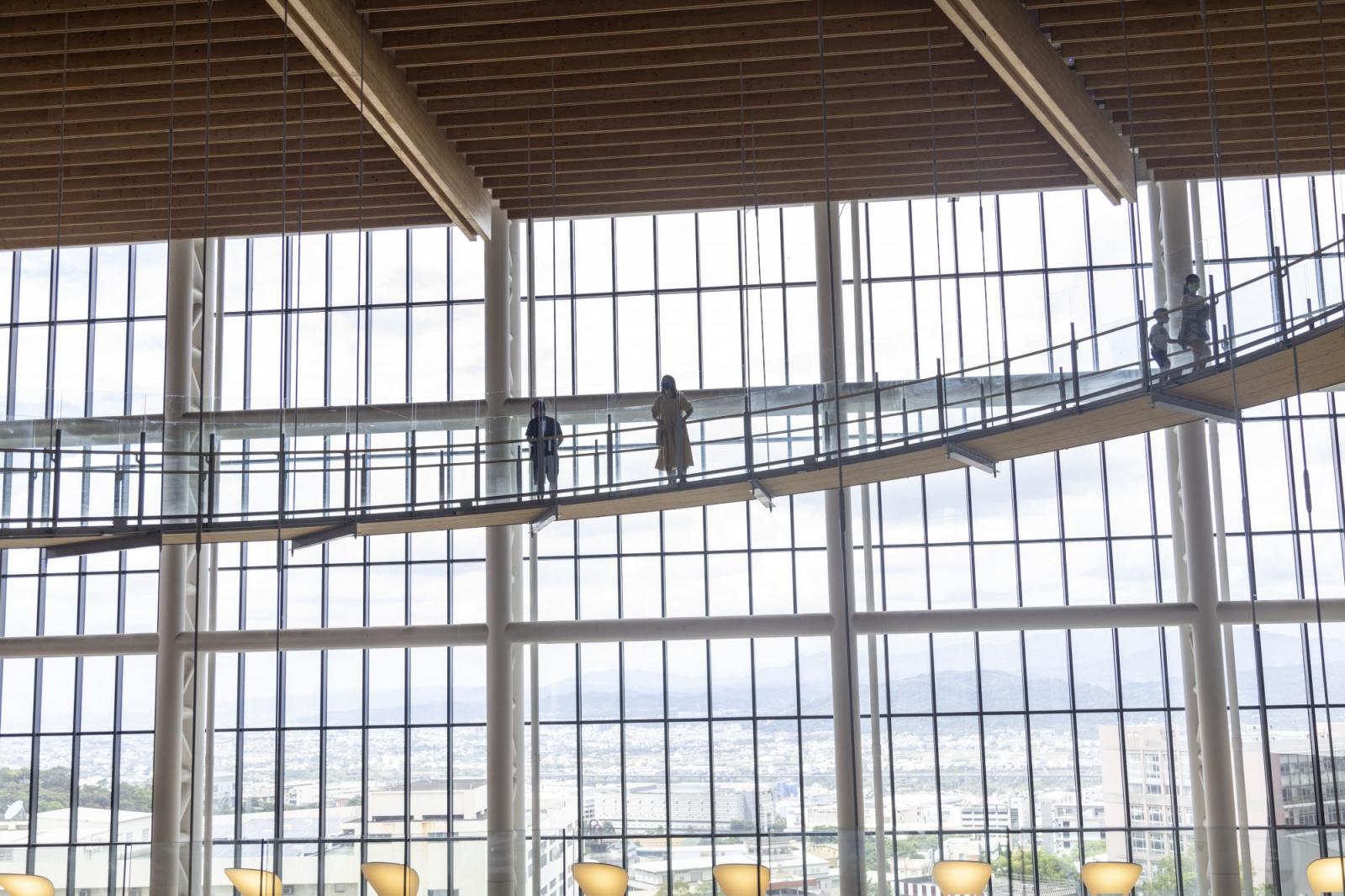 工廠內最巨大、顯眼的生命樹,高度足足有30.8公尺,相當於十層樓高,不僅創下世界最大、最高生命樹環樹步道,更是宛如電影《阿凡達》的真實場景,民眾可以沿長達386公尺的步道環樹而上,一旁通透的落地窗顯得採光十足,邊登高還可以遠望中央山脈、將南投的美景盡收眼底。