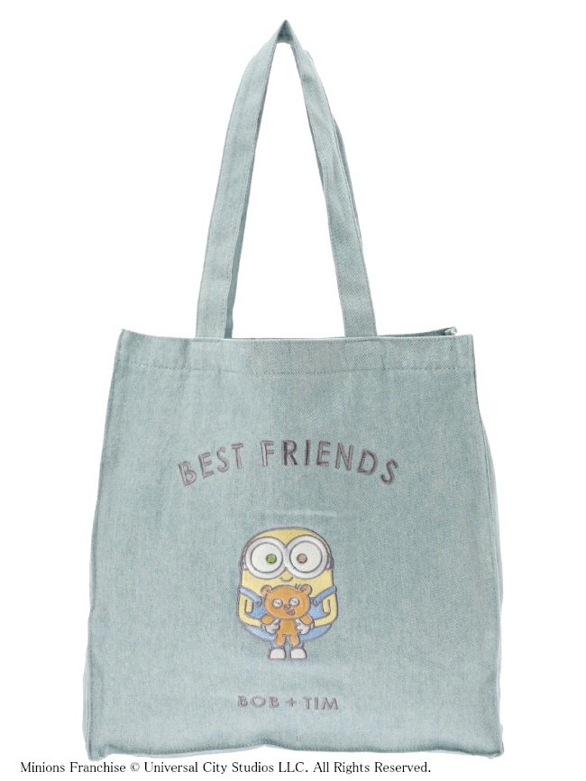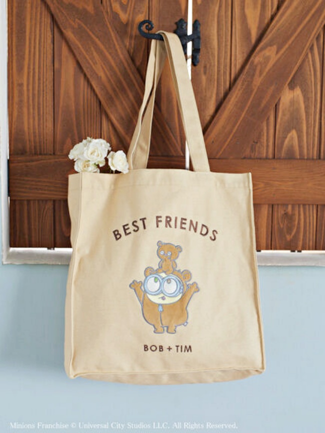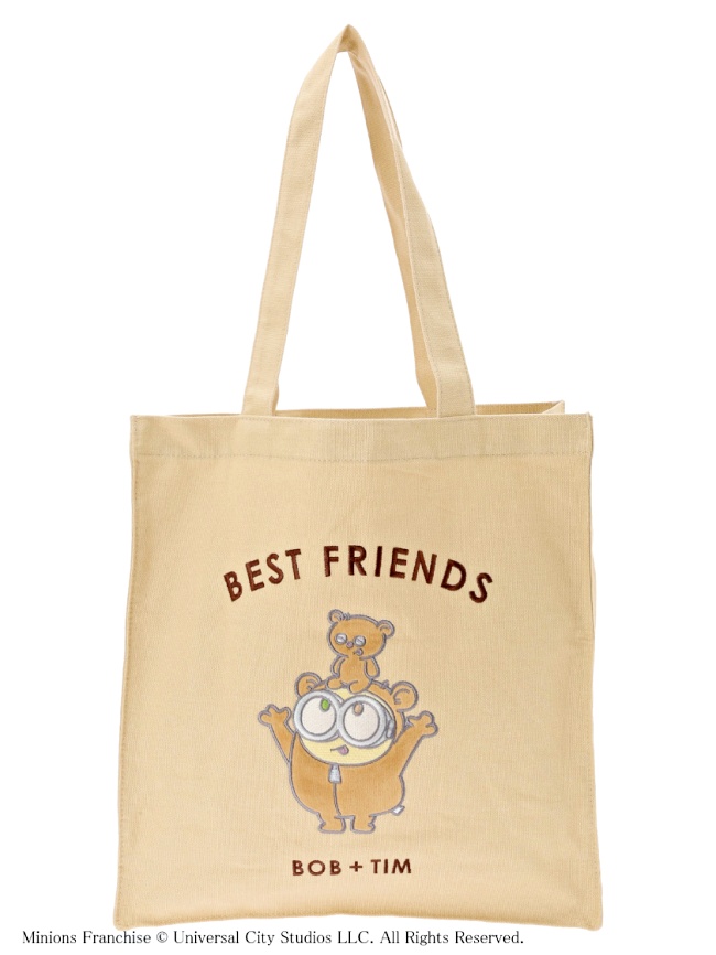 這波聯名一共推出2款帆布包,牛仔布料的款式讓「小小兵蘿蔔抱著提姆」野生出沒,另一款燕麥米配色的包包,則是一次裝飾2隻提姆…咦?其實是蘿蔔穿上玩具熊Cosplay提姆(笑),還搭配「Best Friends」字母裝飾,超推跟閨蜜一起收當最萌姐妹包!