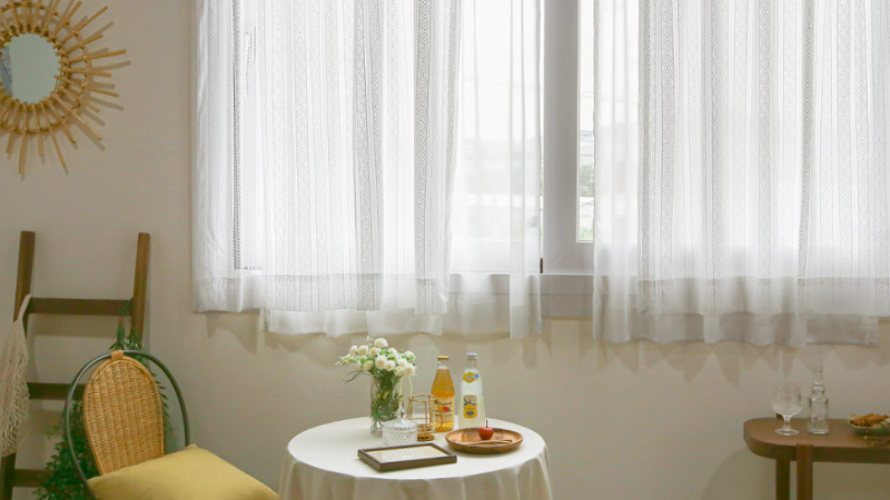 韓系風格的其中一個重點是簡化不必要的雜亂,營造簡約柔和的寬敞空間。倘若租屋處本身不大,可以利用透光窗簾來達到效果!帶有菱形編織紋的白色透光窗簾,簡約帶點小設計,利用自然光改變房間的色調,讓室內採光明亮,空間看起來更寬敞舒適,當和煦陽光灑進房間,好心情隨之而來~