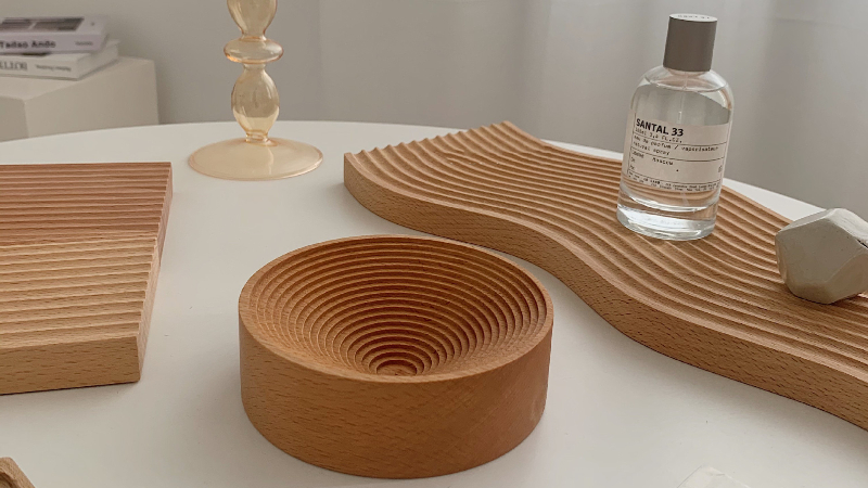 除了基本的家具,在房間內增添一些小物來點綴,更凸顯個人品味!像這款木質凹槽波紋托盤,給人一種自然的氛圍,簡單的波紋幾何線條,就帶有滿滿設計感。木質托盤不僅有裝飾功能,還很適合拿來擺放戒指、項鍊、香水、蠟燭這類小物,在展示的同時兼具收納功能,即使是小小細節,也能讓房間質感瞬間提升~