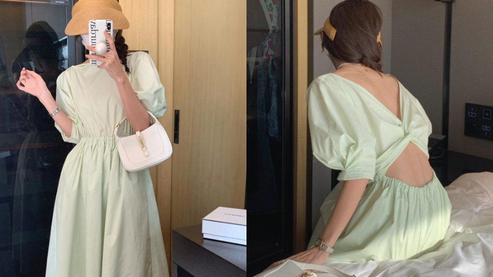 不想要露太多又想要來點小性感嗎?這件有著獨特後背設計的洋裝非常適合你~抽繩的設計可以自由調整簍空大小,收腰的剪裁更能凸顯好比例,澎袖還能遮住手臂肉,讓手看起來更細長!隨便搭個涼鞋就能輕鬆出門,女神穿搭就是這麼簡單~