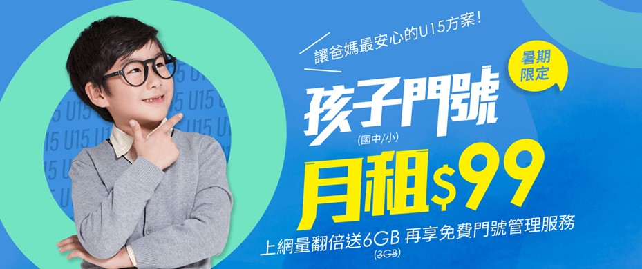 另外,台灣之星也有推出針對15歲以下的「U15 $99單門號案」及60歲以上的「U60 $99單門號案」,可享6GB免費上網、超量降速3Mbps、網內語音免費、網外語音免費10分鐘。
