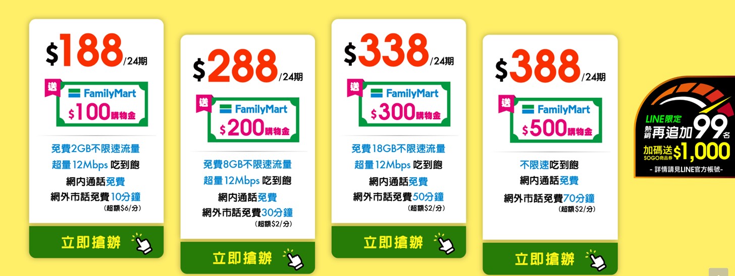另外,網傳遠傳電信有限量的留客加碼方案,提供 99 元月租、4G 1GB 免費流量 、網內免費10分鐘及每月100 元通話費優惠,這部分只有符合資格有緣人才能申辦。