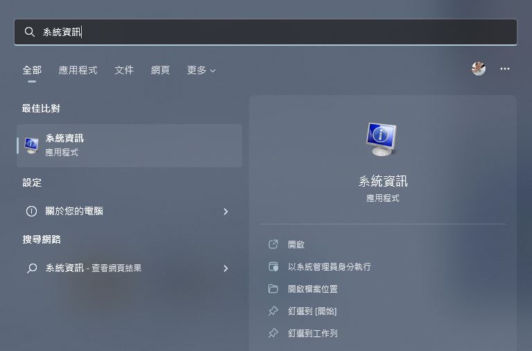 - 搜尋「系統資訊」後點擊開啟。