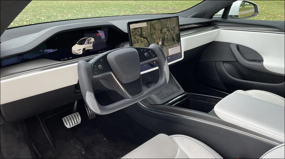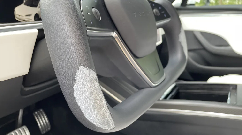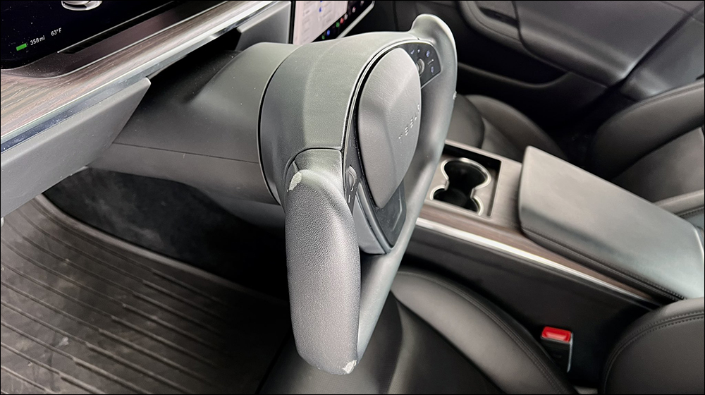 這次 Autoblog 分享搭載 Yoke 方向盤的 Model S Plaid 是來自美國租車平台 Turo 的租賃車,行駛里程為 1.9 萬英里。可以明顯看到 Yoke 方向盤雙手持握的外側下緣已經整個脫皮。