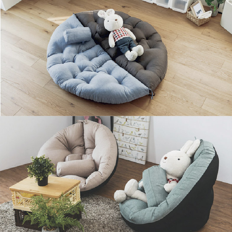 這款多功能的蛋形懶骨頭CP值超高!坐著包覆性極高,還能解開綁繩和拉鍊將座椅攤平當床墊,是一個能坐能躺的多功能座椅。厚實的沙發提升舒適度,靠背有一定的支撐力,不需靠牆就能穩穩站好,還附上小的抱枕能當枕頭、抱枕使用。在這舒適的懶骨頭裡滑手機,大概會不知不覺就睡著了吧。