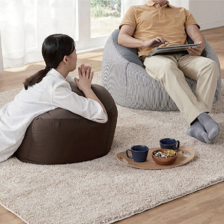 L型的懶人沙發長度比其他款式更長,躺著休息時有較寬的空間可以臥躺。背後立起來的設計在閱讀、使用電腦和手機時也不會讓視線有過多的歪斜。特殊的剪裁能完美貼合身體,無論用什麼坐姿都能恢復原狀,是一款能順應各種身型和體重懶骨頭。