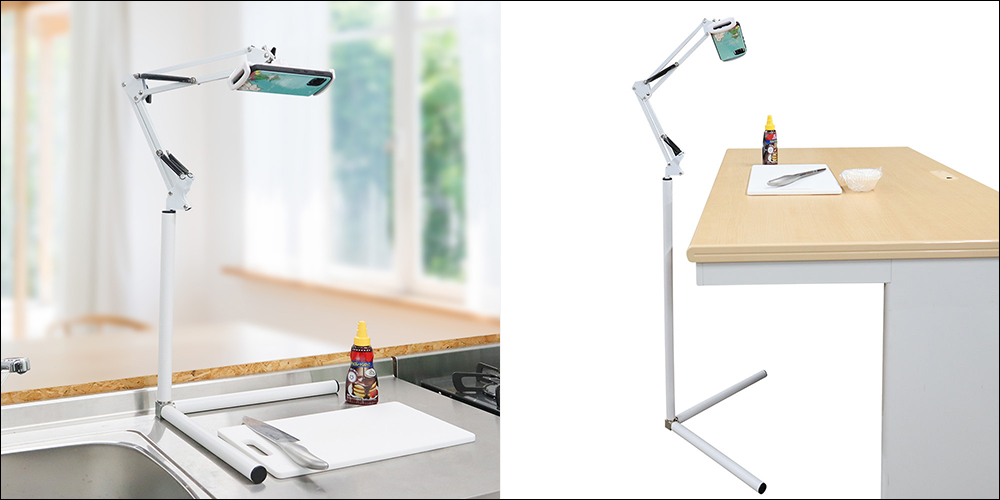 日本 Thanko 不久前才推出能一次放置四台手機的支架產品,最近再推出一款超實用的手機平板支架配件!如果有拍攝開箱、料理教學需求,這款支架能讓手機輕鬆架設在桌面正上方進行俯拍。另外,這款支架同時也能應用於演奏拍攝或躺在床上追劇的懶人支架。