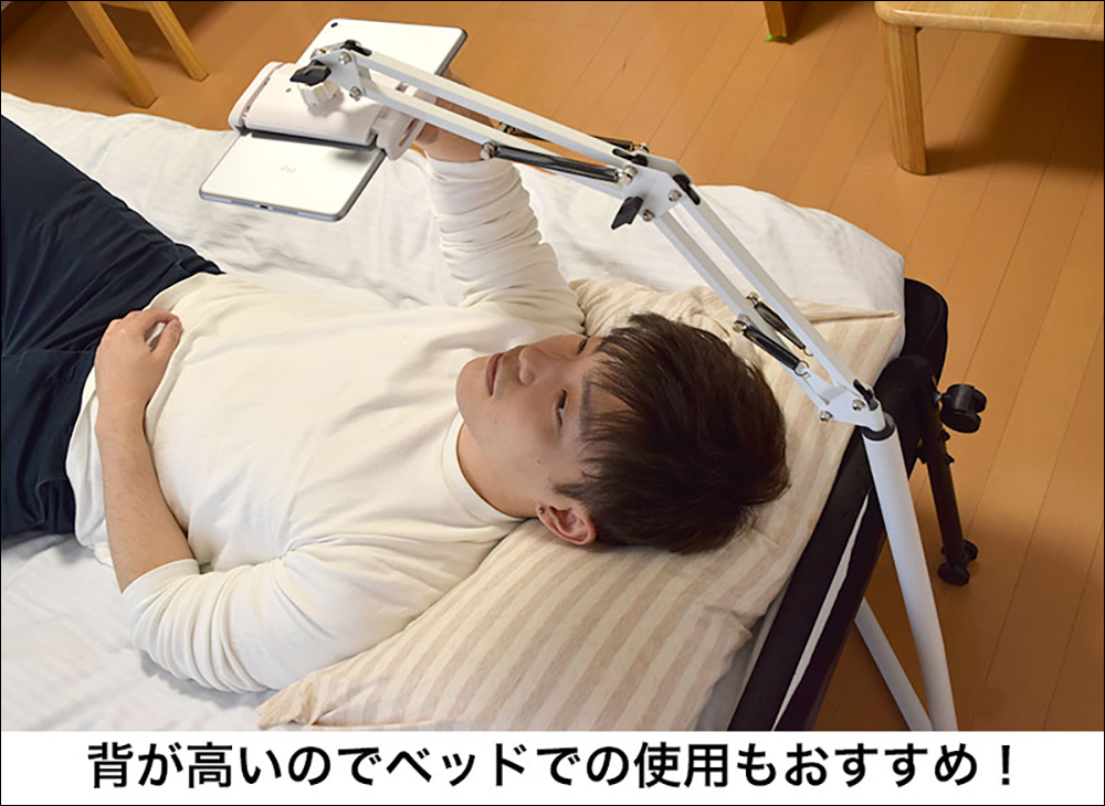 與其他能進行俯拍的手機架多數得長時間安裝在桌板上不同, Thanko 這款支架平時能在生活日常追劇時使用,像是躺在床上用平板或手機看影片,就能成為一款實用的懶人支架,穩定的支撐也不怕躺著被平板或手機給「打臉」