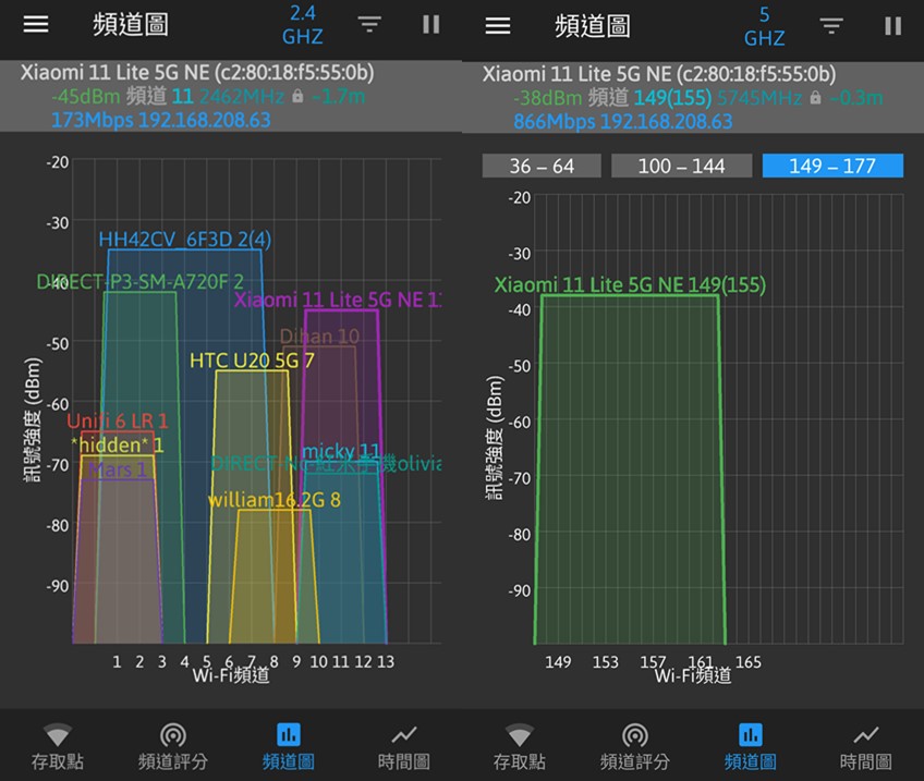 2.透過WiFi分析儀了解附近WIFi頻道使用狀況: