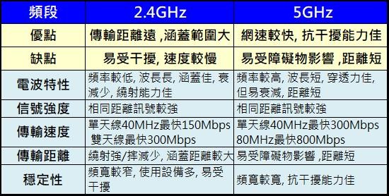 台灣WiFi 主要使用2.4GHz與5GHz頻段,2.4GHz 分成 13 個頻道(Channel),5GHz 則有 3個頻道。因2.4GHz傳輸距離遠且涵蓋範圍大,坊間多數的WiFi路由器或是手機WiFi熱點分享都是內建使用2.4GHz頻段,導致2.4GHz頻段非常擁擠,很容易出現電波干擾問題。