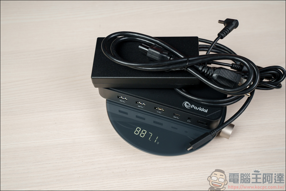 重量也有一定的份量,實測約 887.1g,這款集線器就比較適合純放在家中使用: