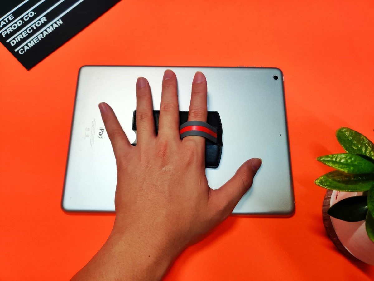 iPad 雖然重量比手機重很多,但安裝 POCKETIN 也是能使用。因為工作上需要用到 iPad 報告,我個人會將 iPad 橫放來展示內容,因此使用上 POCKETIN 在橫放手持時會更佳穩定不易滑落。