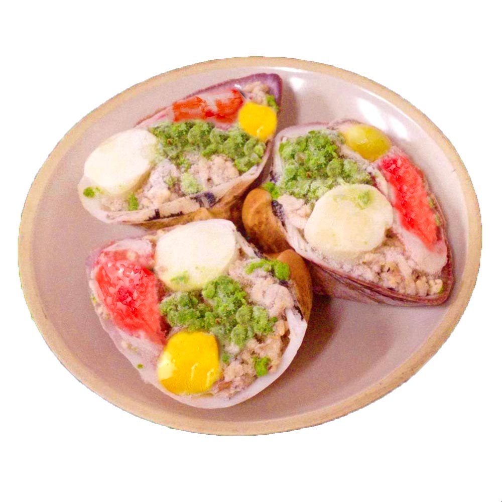 上野物產位於雲林,是擁有老經驗的海產批發商。小帆船的形狀,剛好一人一個,不用擔心吃了過多的糯米造成腸胃不適,且還適合當成聚會的餐點,搭配了魷魚、鳳眼果以及蟹味棒,增添有別於一般米糕的風味。