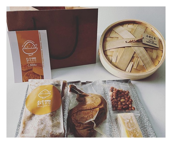 這款復古蒸籠油飯用了蒸籠蓋當包裝,增加商品的獨特新鮮感。而內容物則有花生油飯、滷雞腿、玉子燒跟油花生這幾樣商品,讓你在吃著鹹味的滷雞腿還有油飯的同時,也可以搭配甜甜口感的玉子燒跟油花生,鹹甜鹹甜,給你不同的好滋味。