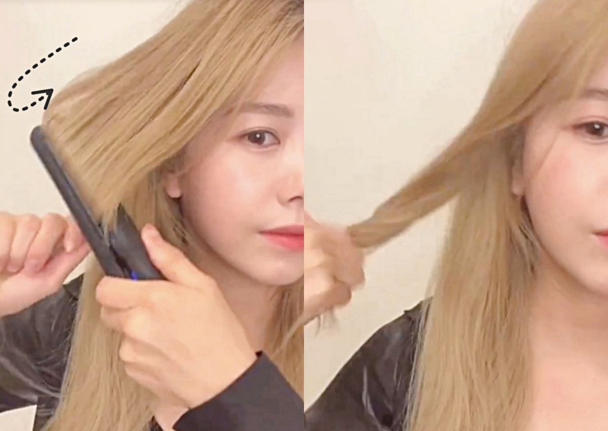 這個方法真的超簡單,重點就在於不用在意平板夾、離子夾方向,直接往下繞出一個C字,接著用手繞來取代夾捲的步驟,想要外翻捲、手指就往外捲,想要內捲、手指就往內繞,這樣子夾捲更加簡單,非常推薦新手!
