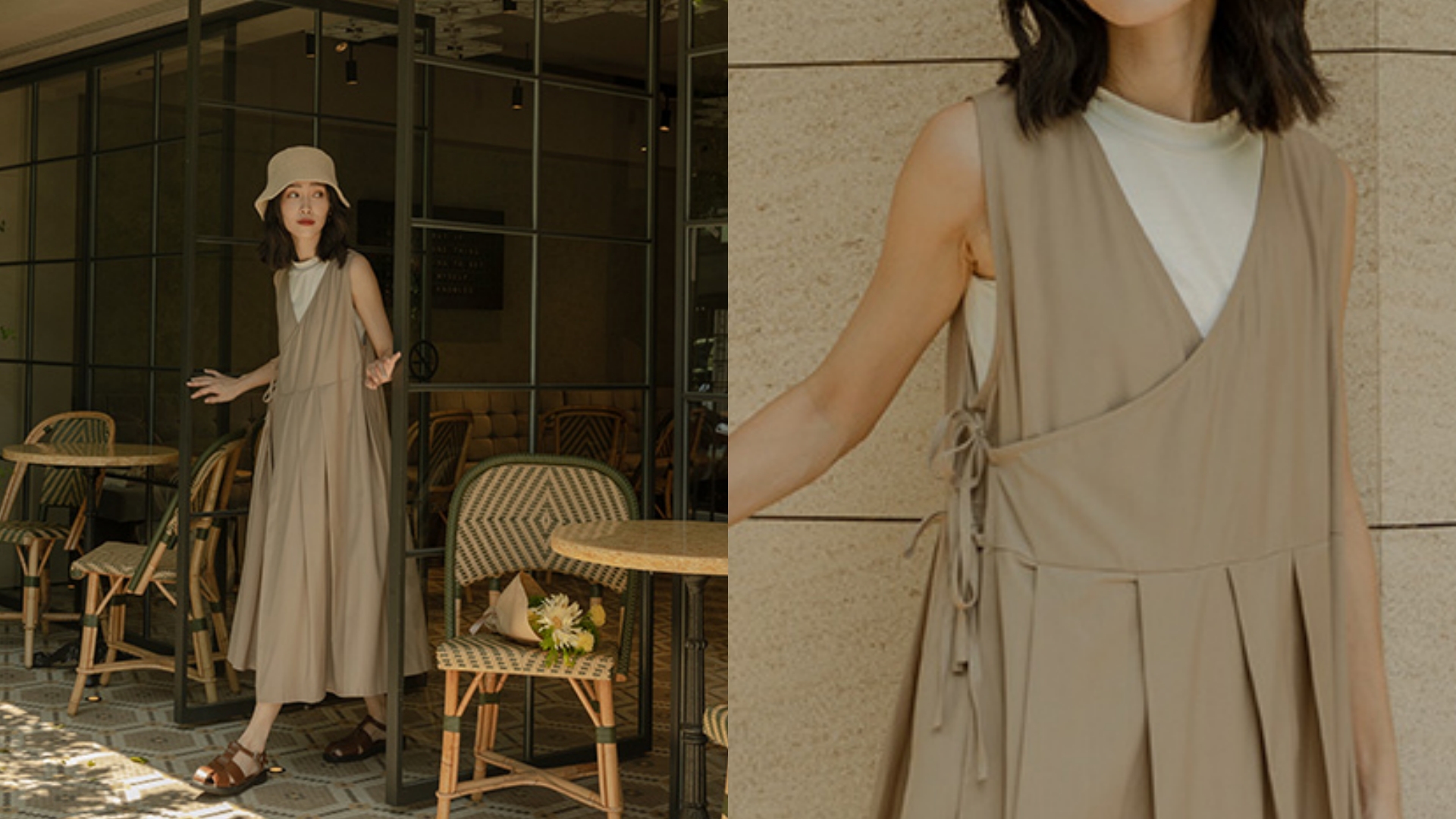 仙女單品推薦 1:QUEEN SHOP V 領交叉綁帶百褶無袖洋裝