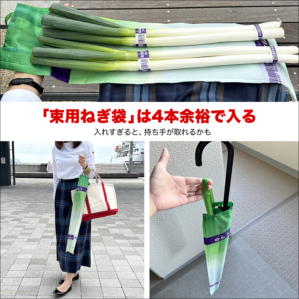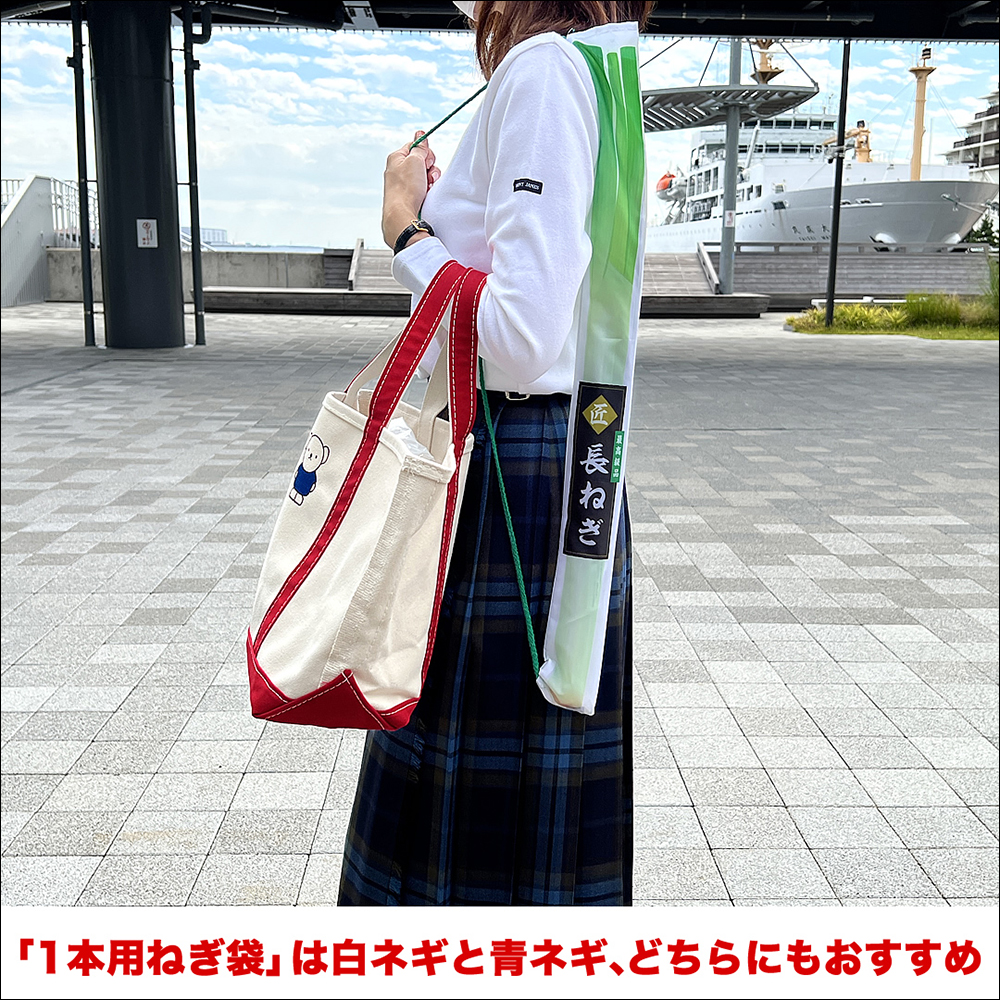 如果購買的是一把大蔥,則可使用這款有束口帶的蔥專用袋,將它在肩上不怕沒手拿它。
