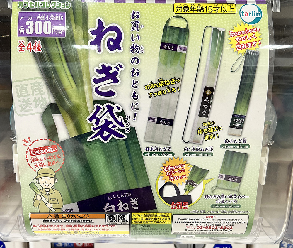最近在日本就出現一款有趣且實用的轉蛋商品,近期在日本社群間掀起熱烈討論,因為這款袋子除了外觀印著蔥的外觀,更是專門為蔥設計的袋子,讓民眾在買蔥時能更容易將蔥提著揹著帶回家!蔥專用袋這款轉蛋商品每顆蛋的價格為 300 日圓,一共有四種款式。除了有三種形式的專用袋,還有一款能在蔥還是過長的時候套在袋口的延長小袋。