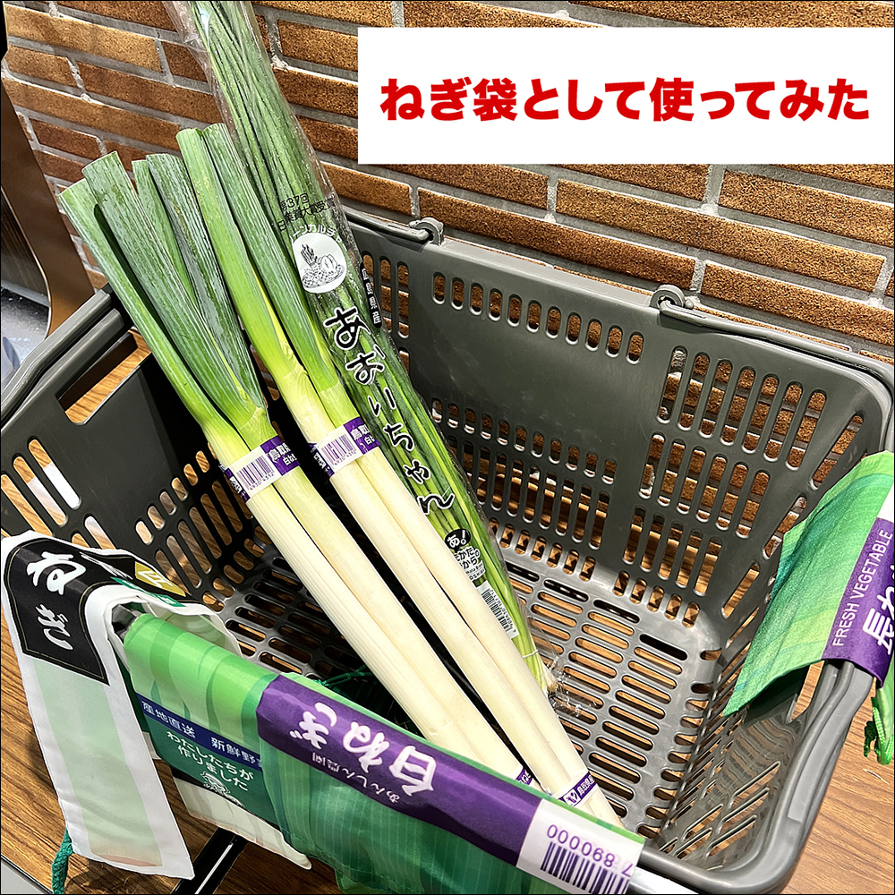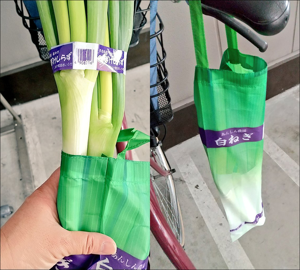 容量其實不小,因此也有人將大蔥與大根(白蘿蔔)一起裝進這袋子裡。