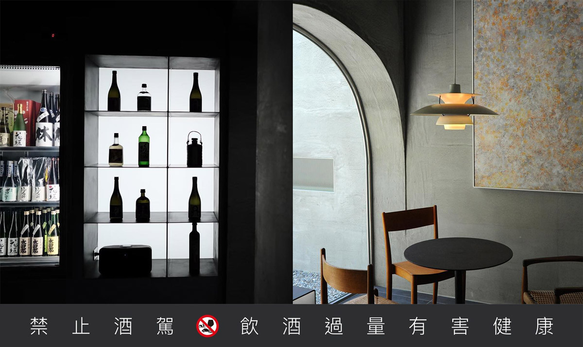走入「屋物清酒」,映入眼簾的是一大面的清酒櫃,陳列並販售著上百款日本清酒,大家也可以在店內恣意品酒。而「屋物清酒」其實就是丹麥老件家具店「屋物工作室」的延伸品牌,店內的桌椅、燈具也都來自於此,搭配冷色調的空間,更襯托出老件歷經時光歲月的韻味。
