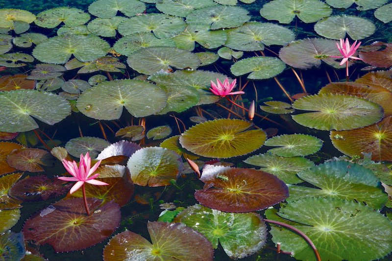 各位可以看看下圖,也許樹葉與天空的顏色可以透過後製調整色彩。但 YouTube 影片中池塘會有反光,基本上不容易看到魚,但是轉動鏡片外框之後,可以明顯看到池塘內的魚,這效果是後製難以仿照出來的。