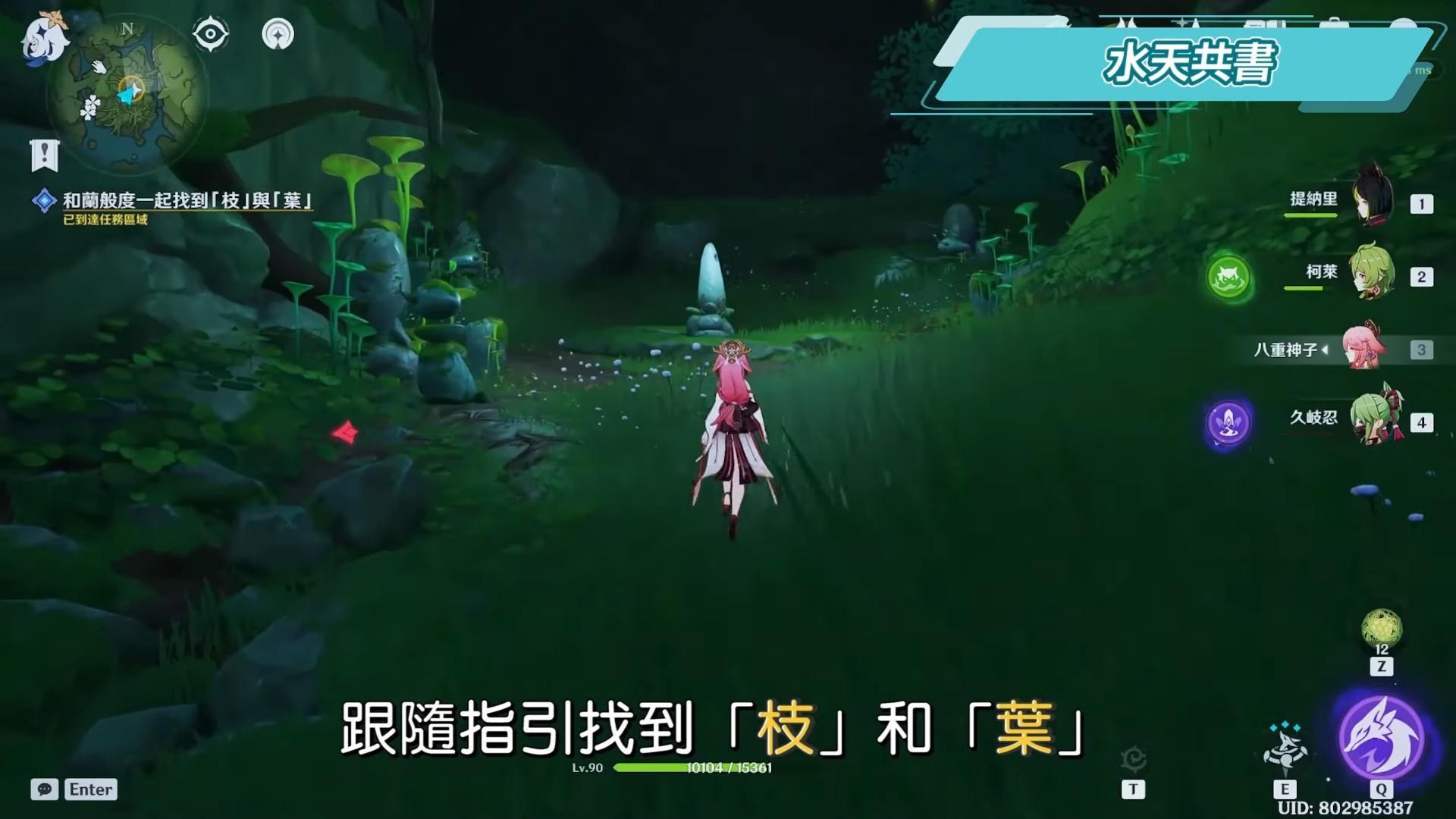 從水天叢林的七天神像傳送過來就可以看到任務標示,找到被蕈獸包圍的蘭那羅,清除蕈獸後與蘭般度對話。跟隨指引替蘭般度清除兩處的蕈獸並找到「枝」和「葉」。