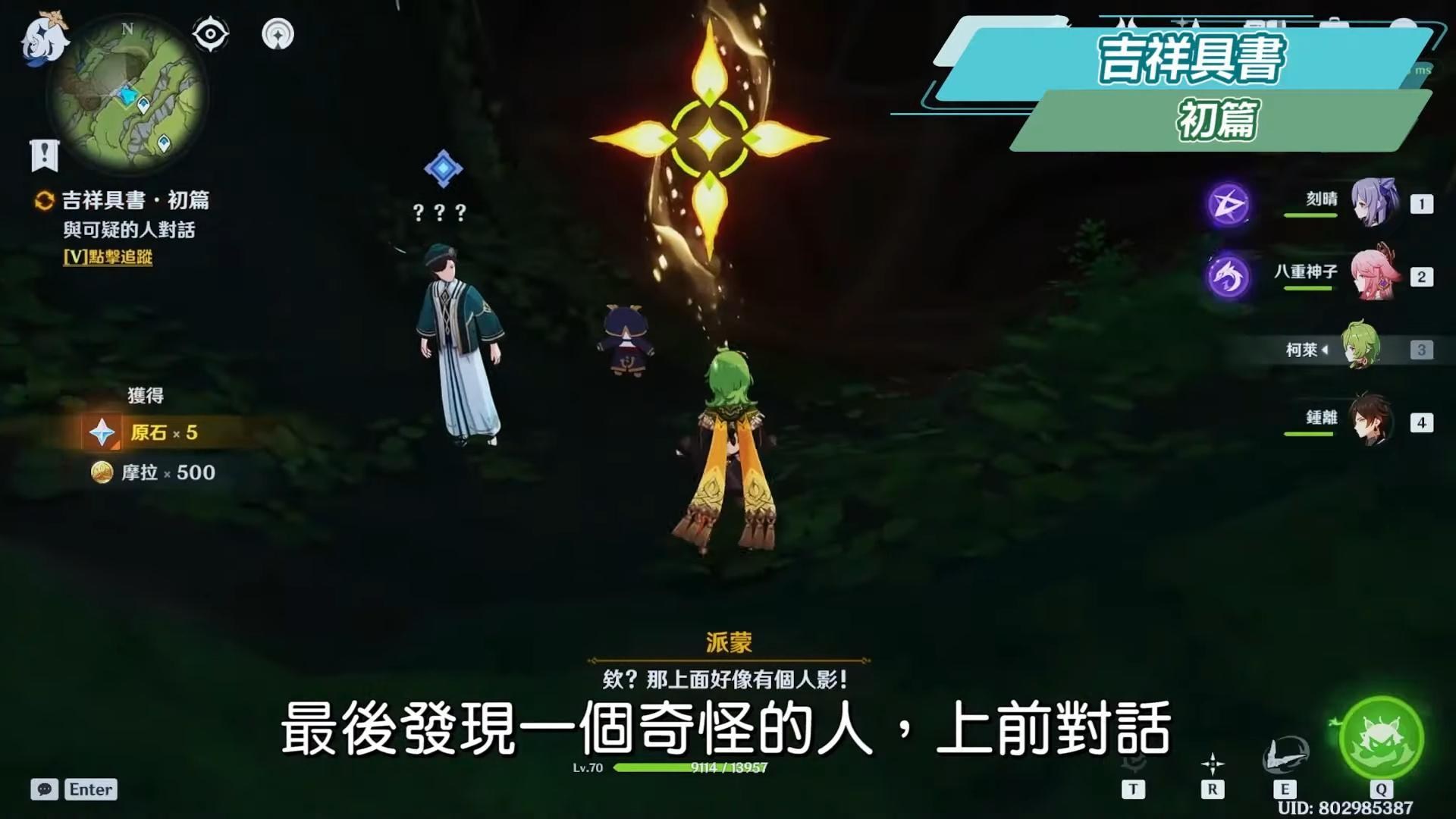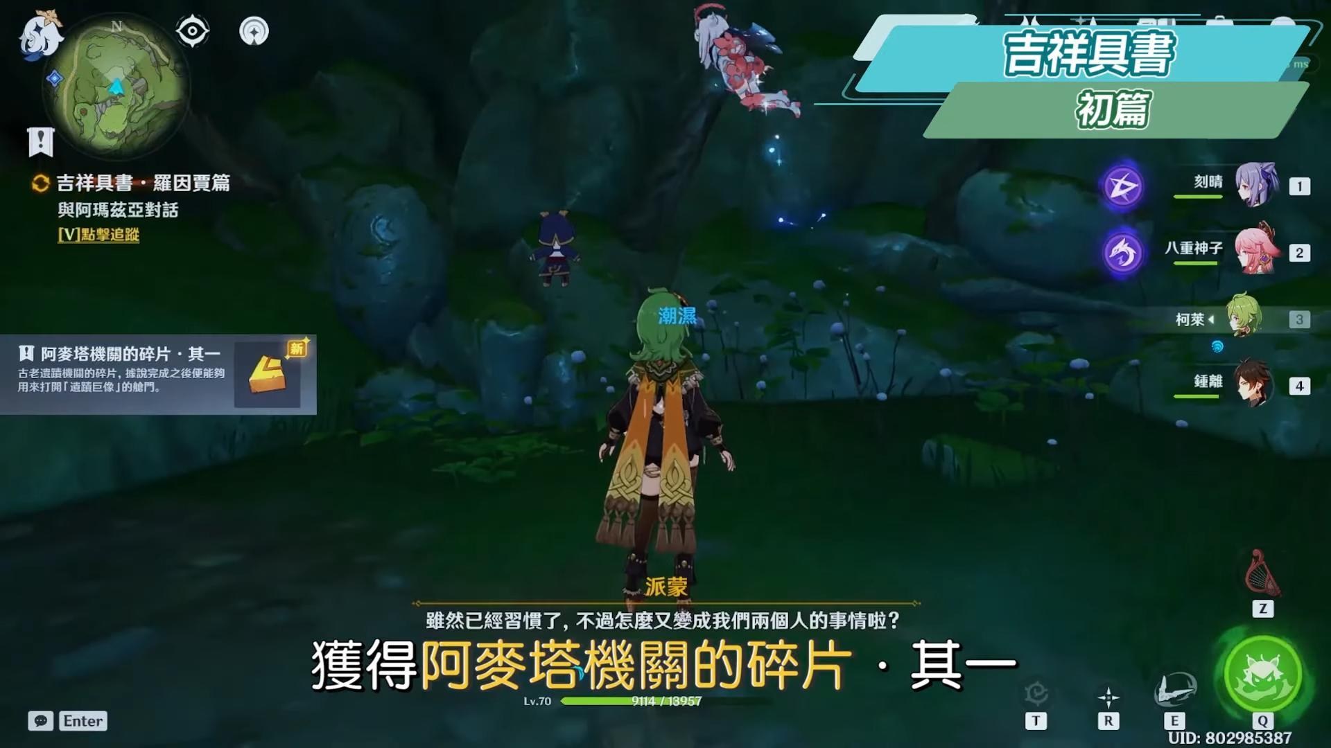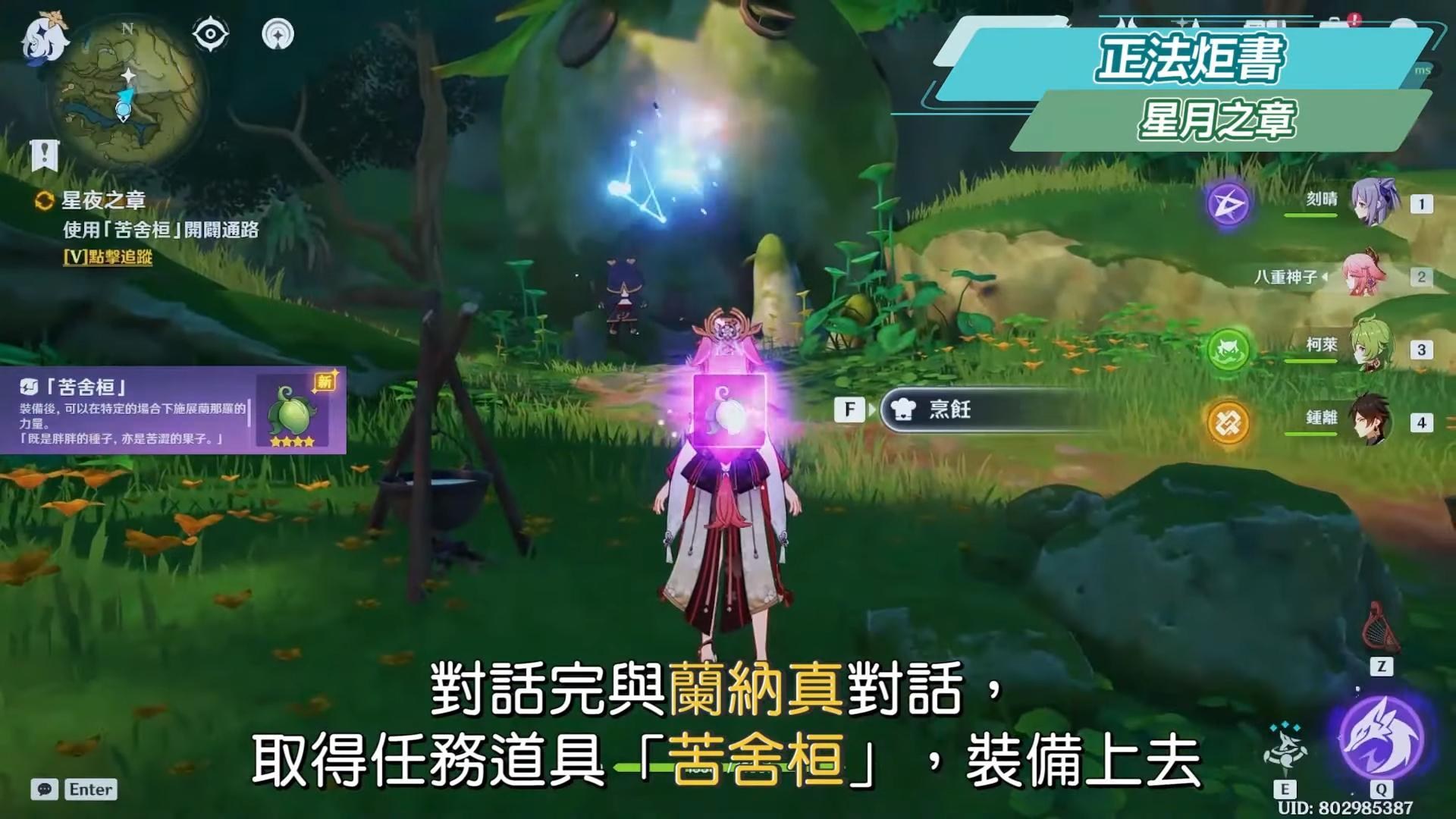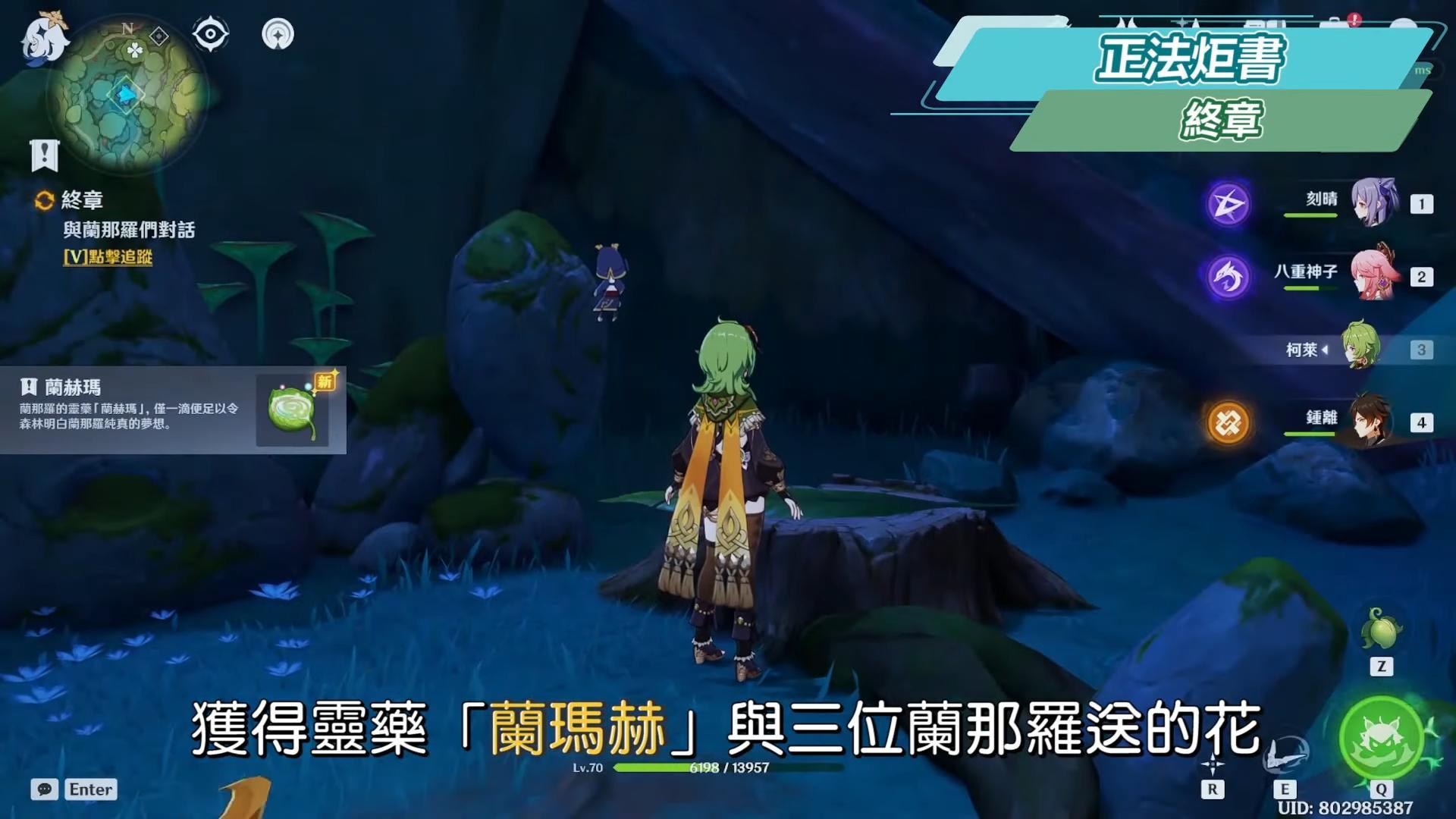 到無郁稠林與蘭納迦對話,尋找耶然草,在附近用岩元素觸發一個隱形菇可以產生風場,往上飛,可以順便拿草神瞳,接著解開三處耶然草的封印。