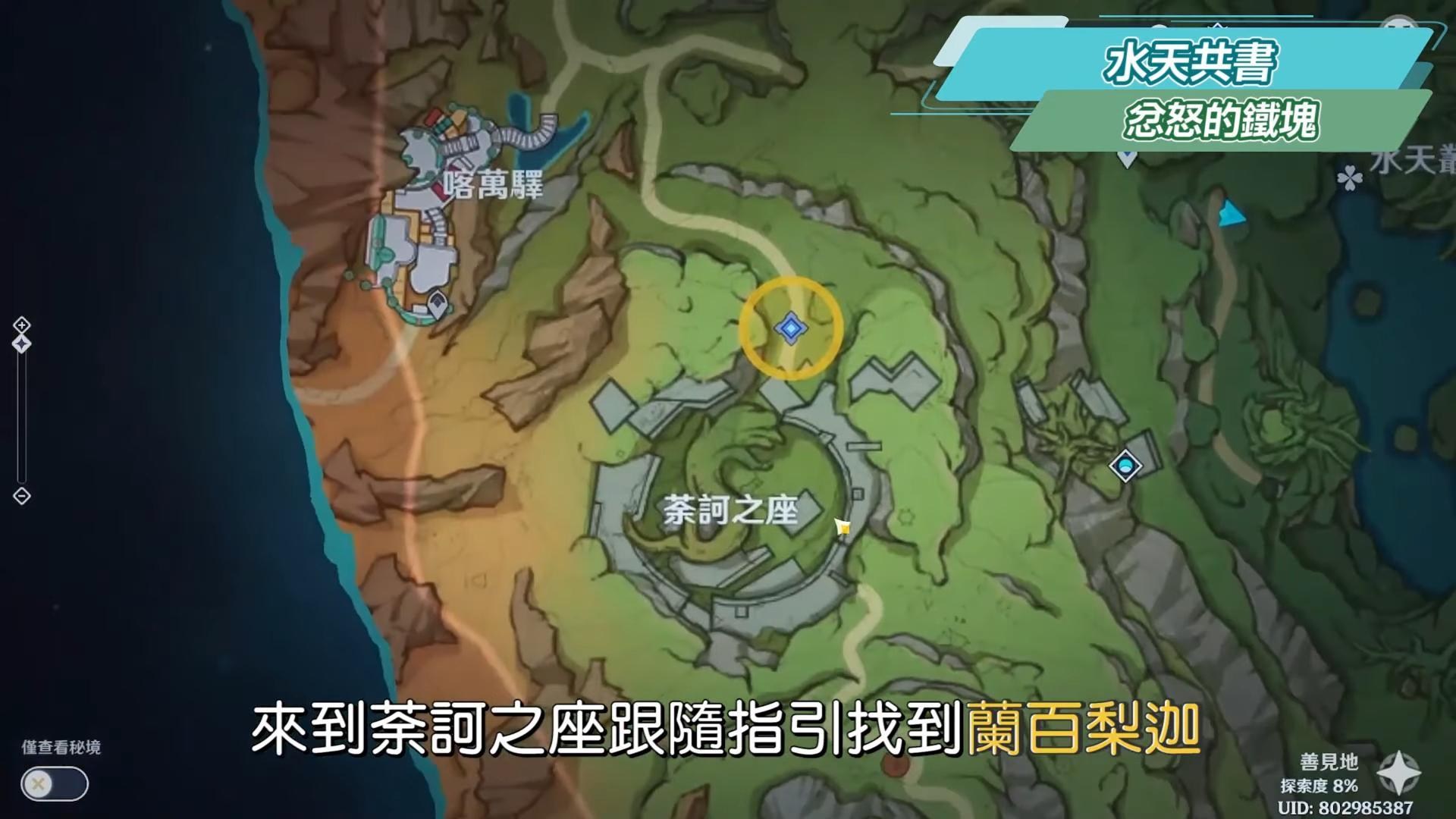 跟隨指引轉動葉的方向朝向中間的枝,而後得知還需要去三處地方協助三個蘭那羅。