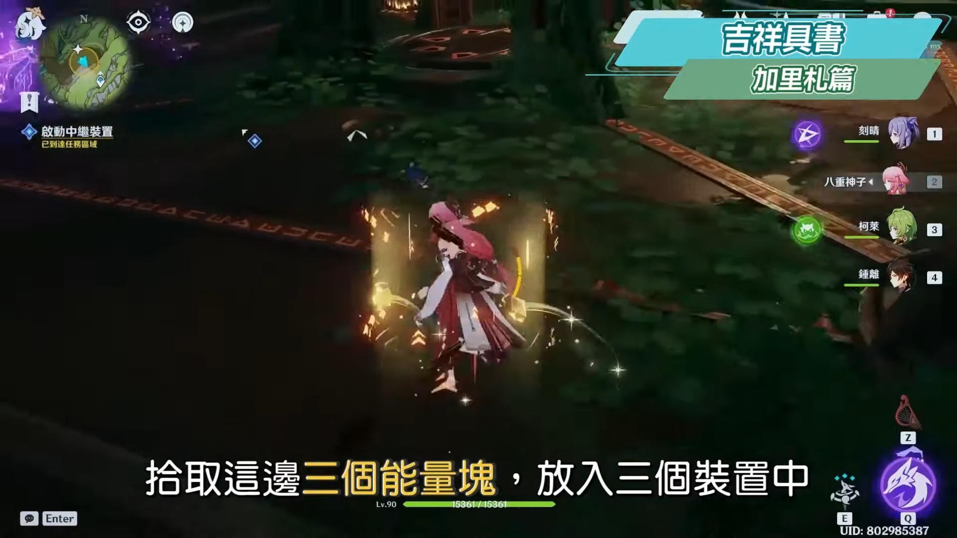 深入會看到遺跡重機和遺跡守衛,轉動旁邊的三個葉朝向枝,旁邊的屏障需要找完恆素果才可以開啟,擊敗遺跡重機後和蘭百梨迦對話,選擇一起回去,任務結束。