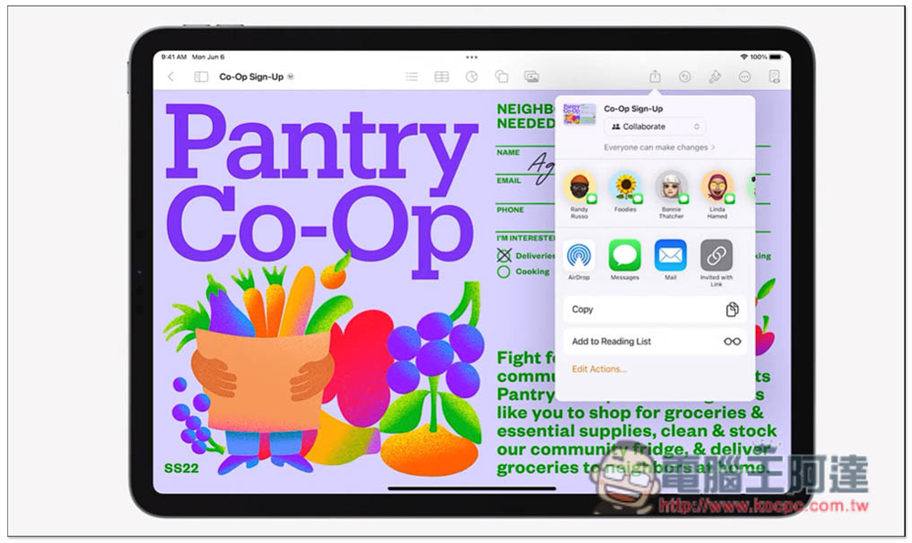 「訊息」App 還導入協作與管理橫跨檔案,在 Keynote、Numbers、Pages、備忘錄、提醒事項、Safari 以及第三方 Apps 等都能使用,邀請團隊成員一同進行當前作業。更詳細 iPadOS 16 新功能介紹,請點我閱讀: