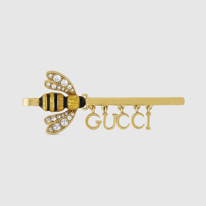 Gucci的蜜蜂圖案最早是在1970年代的亮相,現在已經成為成為另一個品牌標誌性象徵,這款髮夾就是以經典蜜蜂手稿為基礎,運用金屬琺瑯打造立體浮雕,品牌字母會隨著你的每一步小巧的搖晃,除了有收藏價值外更是可愛必備!(價格請洽商店。)