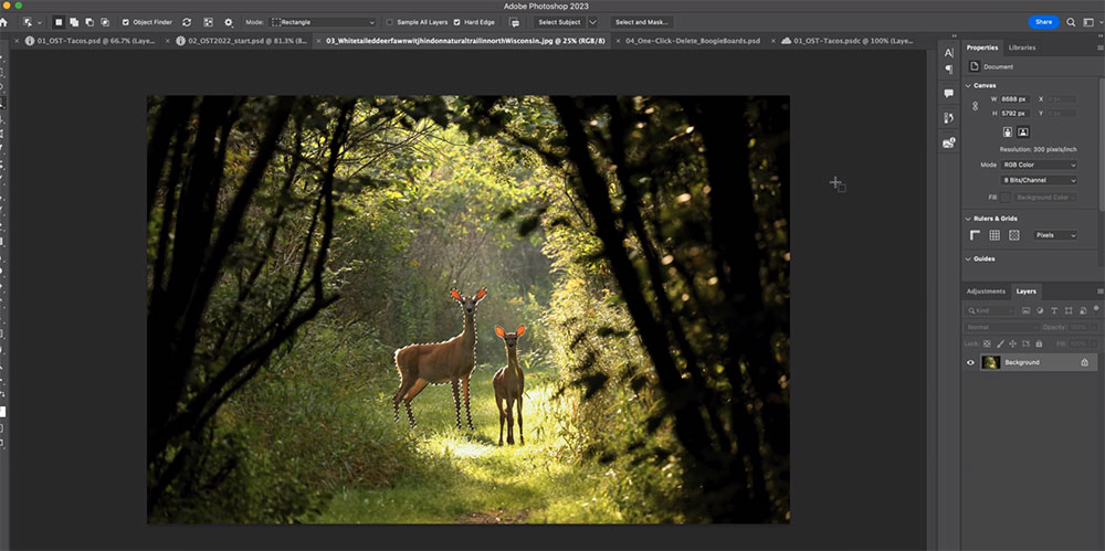 過去,創作者需要透過反轉主體的遮色片來選取背景,現在 Adobe 的 AI 功能 可以一鍵直接生成背景遮色片。